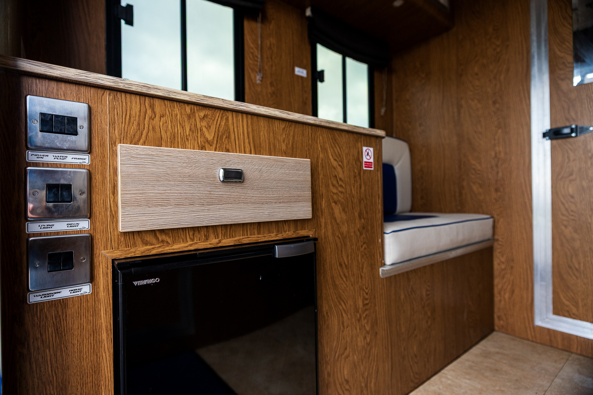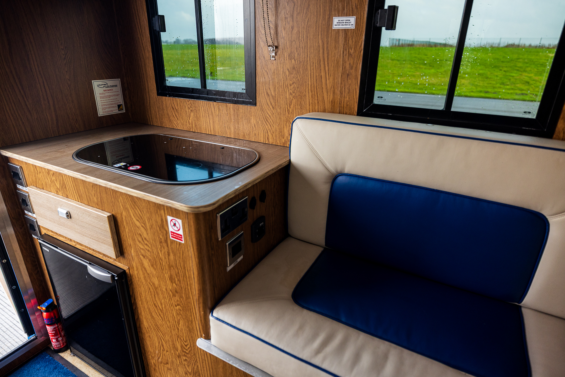 The living quarters are bright, modern, and fully equipped, offering comfortable 2-berth accommodation. The layout includes a functional kitchen with gas hob, fridge, sink with hot and cold water, and mains sockets, making it perfectly suited for overnight stays or competition weekends. Dining converts effortlessly into a double bed, and ample storage is provided throughout. Additional features such as bonded windows, 240v hook-up, solar charging, air conditioning, and cruise control enhance comfort and usability.