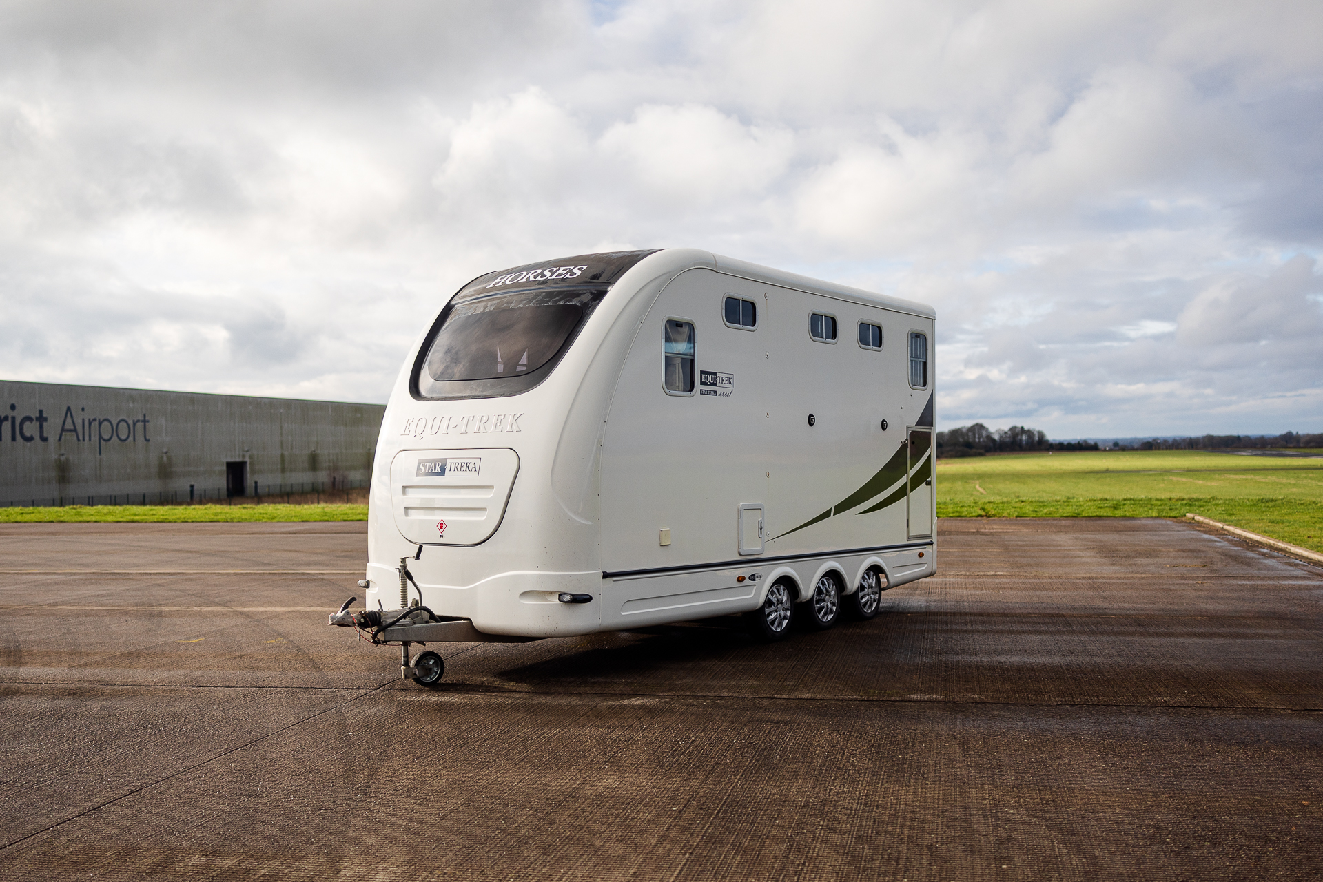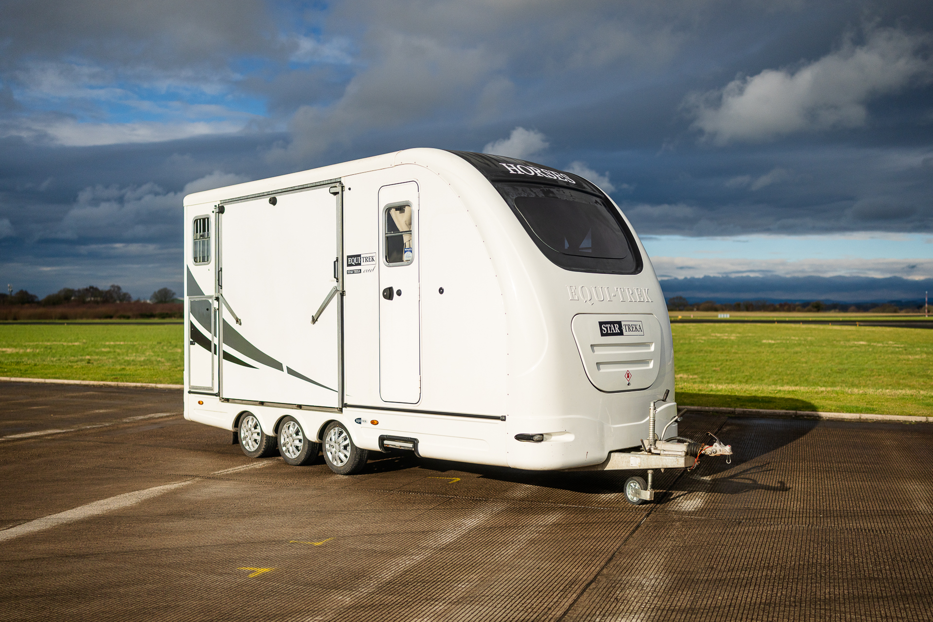 This superb 2022 Star-Treka is a rear-facing two-horse trailer with luxury overnight accommodation, finished in self-colour white with grey graphics. Built on a galvanised steel chassis with an aerodynamic fibreglass mould unique to the Equi-Trek range, it benefits from independent suspension, six fully braked wheels and a lockable coupling, delivering excellent towing stability and safety.