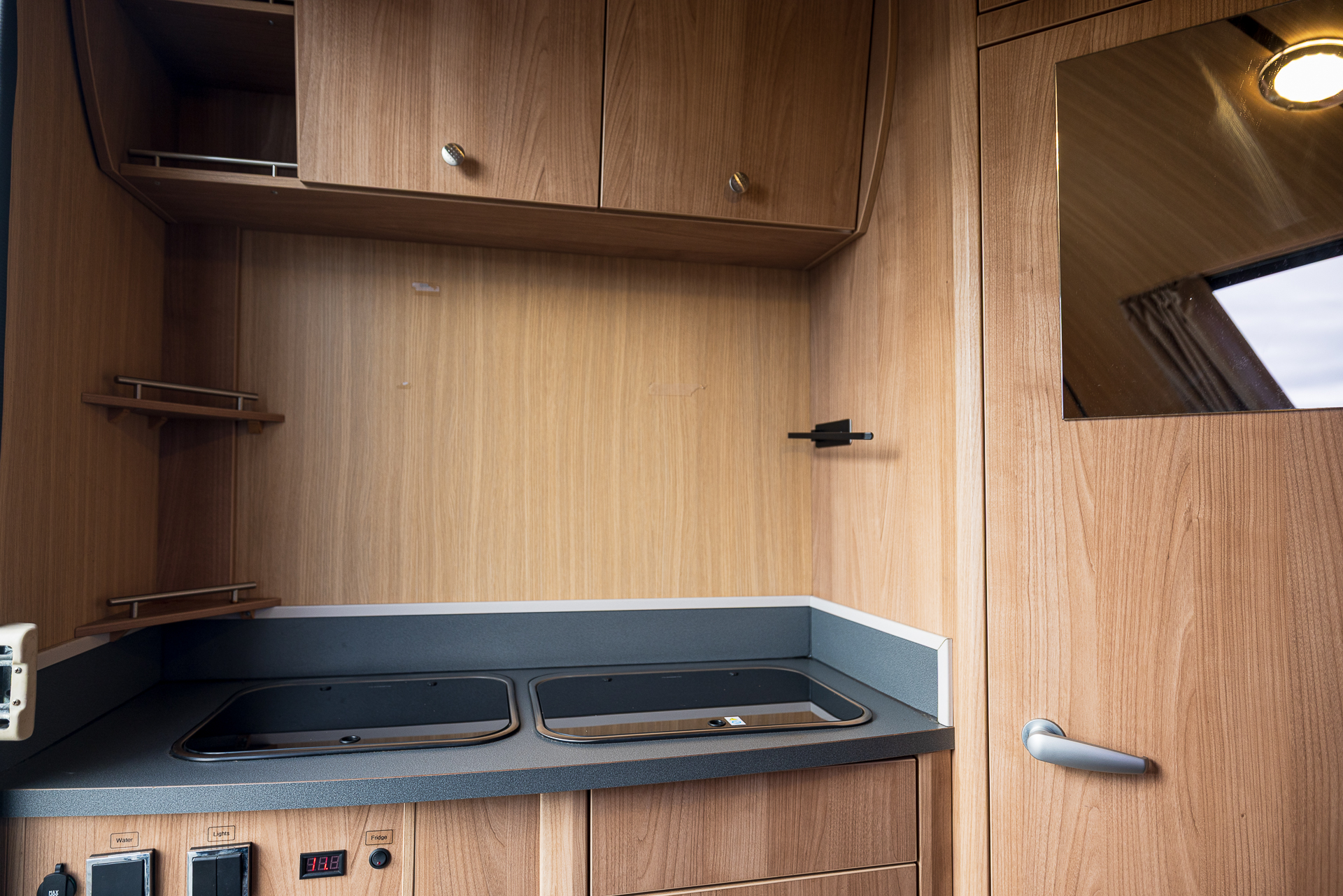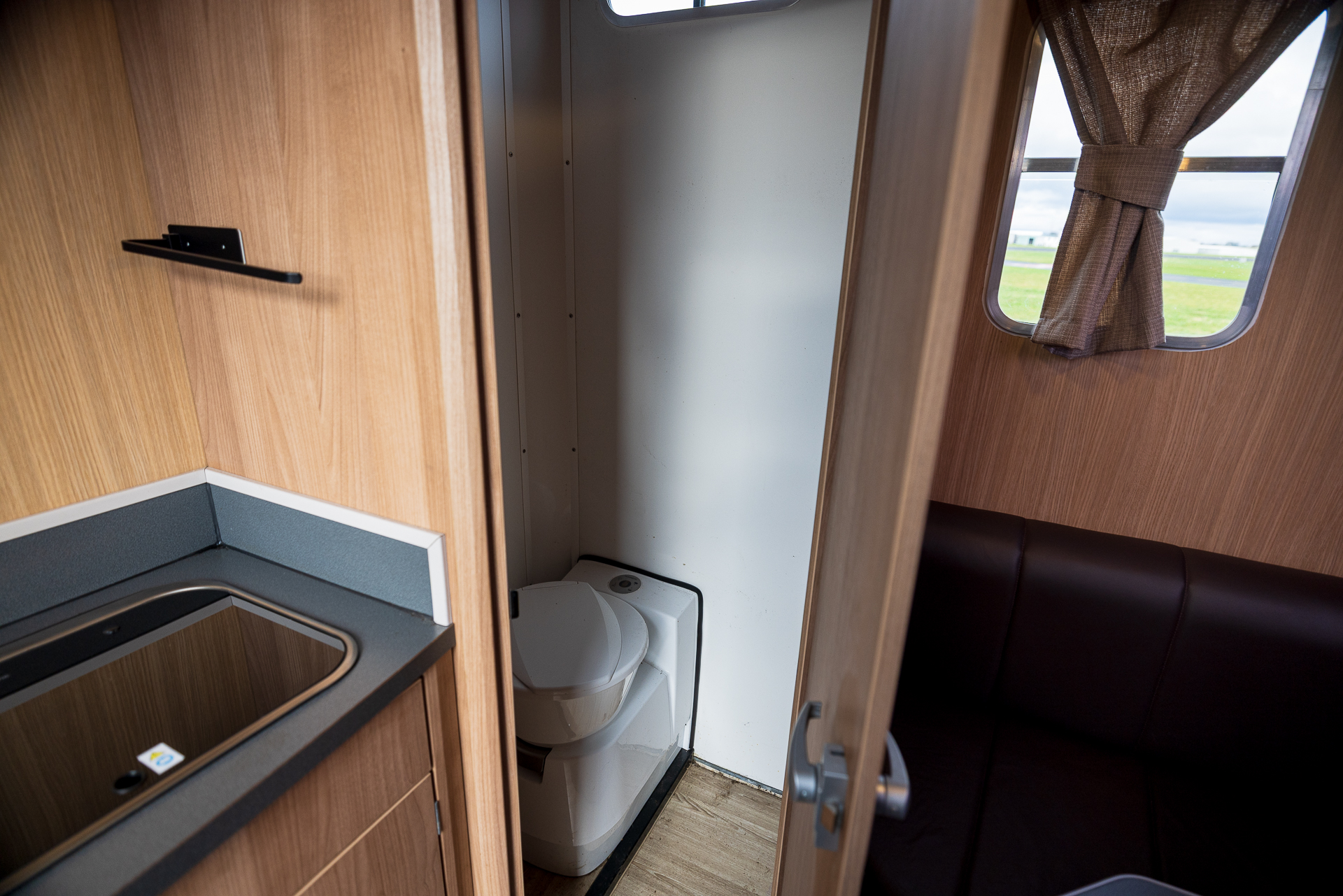 The spacious, self-contained horse area is designed to comfortably accommodate two large horses. It features an adjustable padded partition with PVC skirt to the floor, full-width collapsible breast bar, head divider, composite high-impact kick boards and panels, strong aluminium plank floor and slip-resistant rubber ramp. Additional ventilation and lighting, including a skylight roof vent and extra vent window, create a light and airy travelling environment.