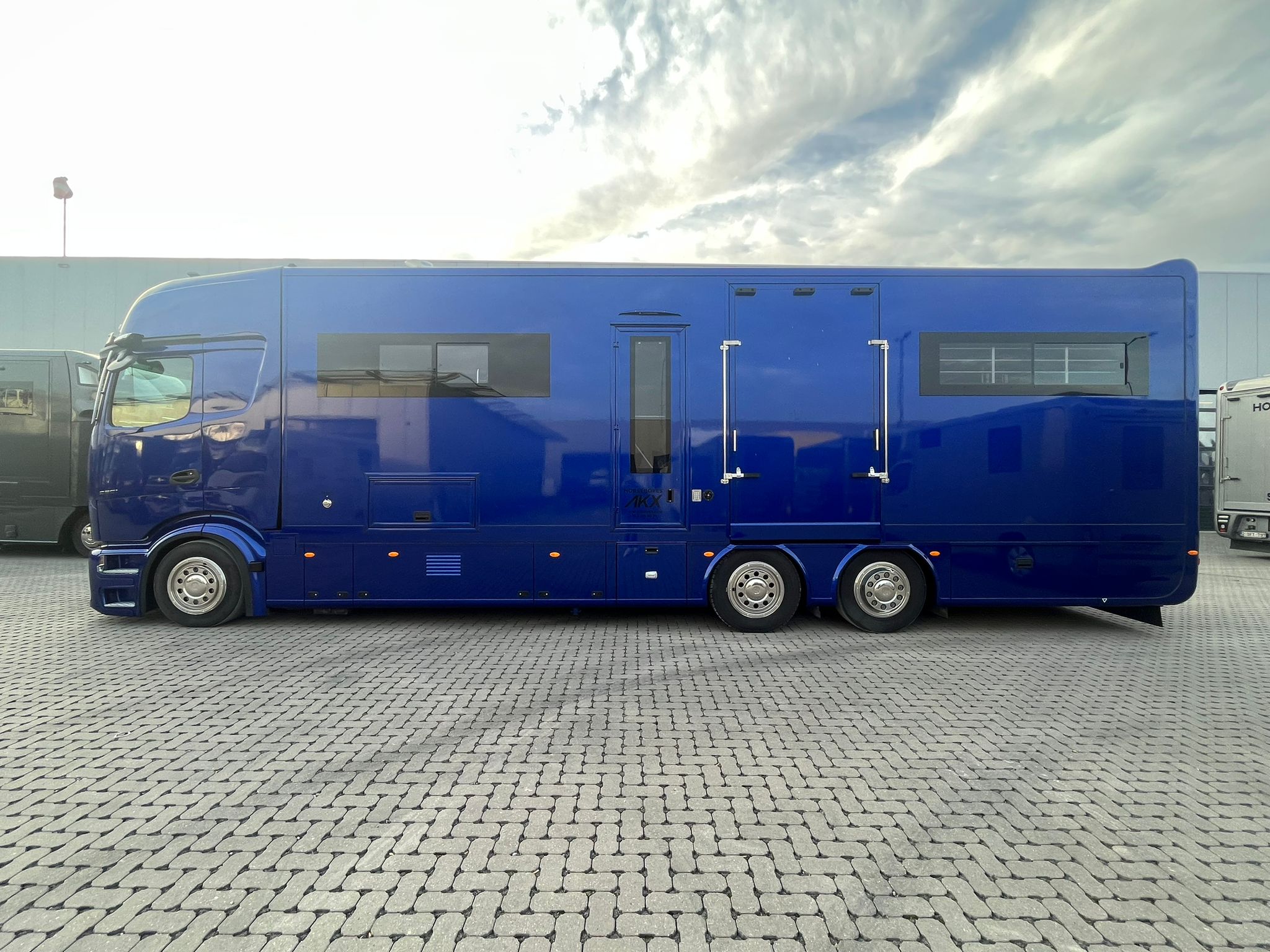 This 2026 Stephex AKX 510L 26-tonne horsebox is built on the highly specified Mercedes-Benz Actros L GigaSpace Pro Cab, delivering an impressive 510 bhp for effortless performance and outstanding long-distance comfort. Finished in the striking BMW San Marino Blue, it offers a premium yet cost-effective alternative to the STX range. The spacious layout provides sleeping accommodation for six people alongside safe, practical stabling for six large horses, making it ideal for professional and competitive use.