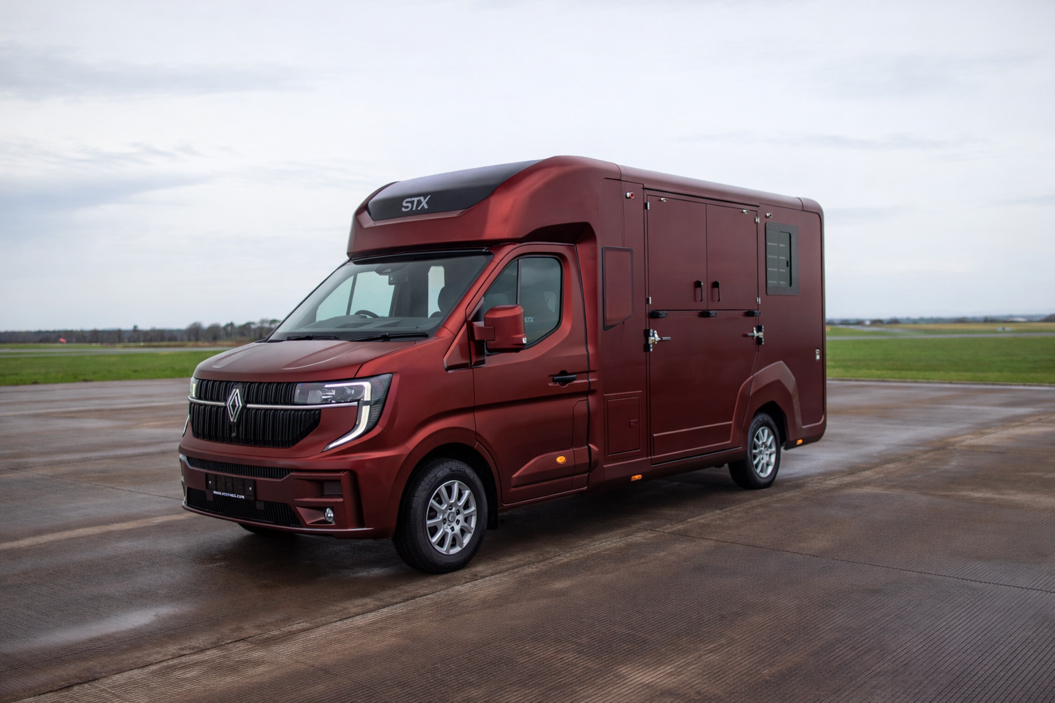 Offered for sale is this stunning 2026 STX Renault Master horsebox finished in the highly desirable Bentley Cricket Ball Red colour, giving it a truly premium and eye-catching appearance.