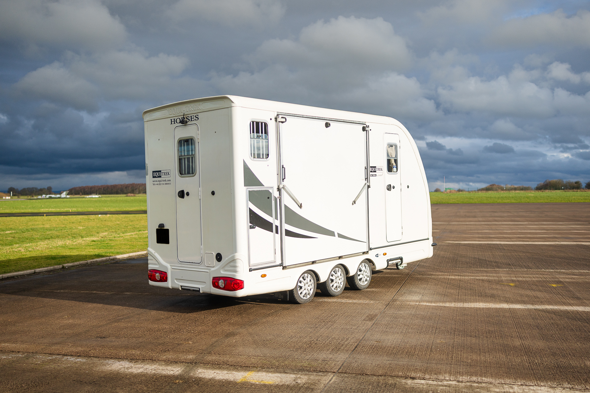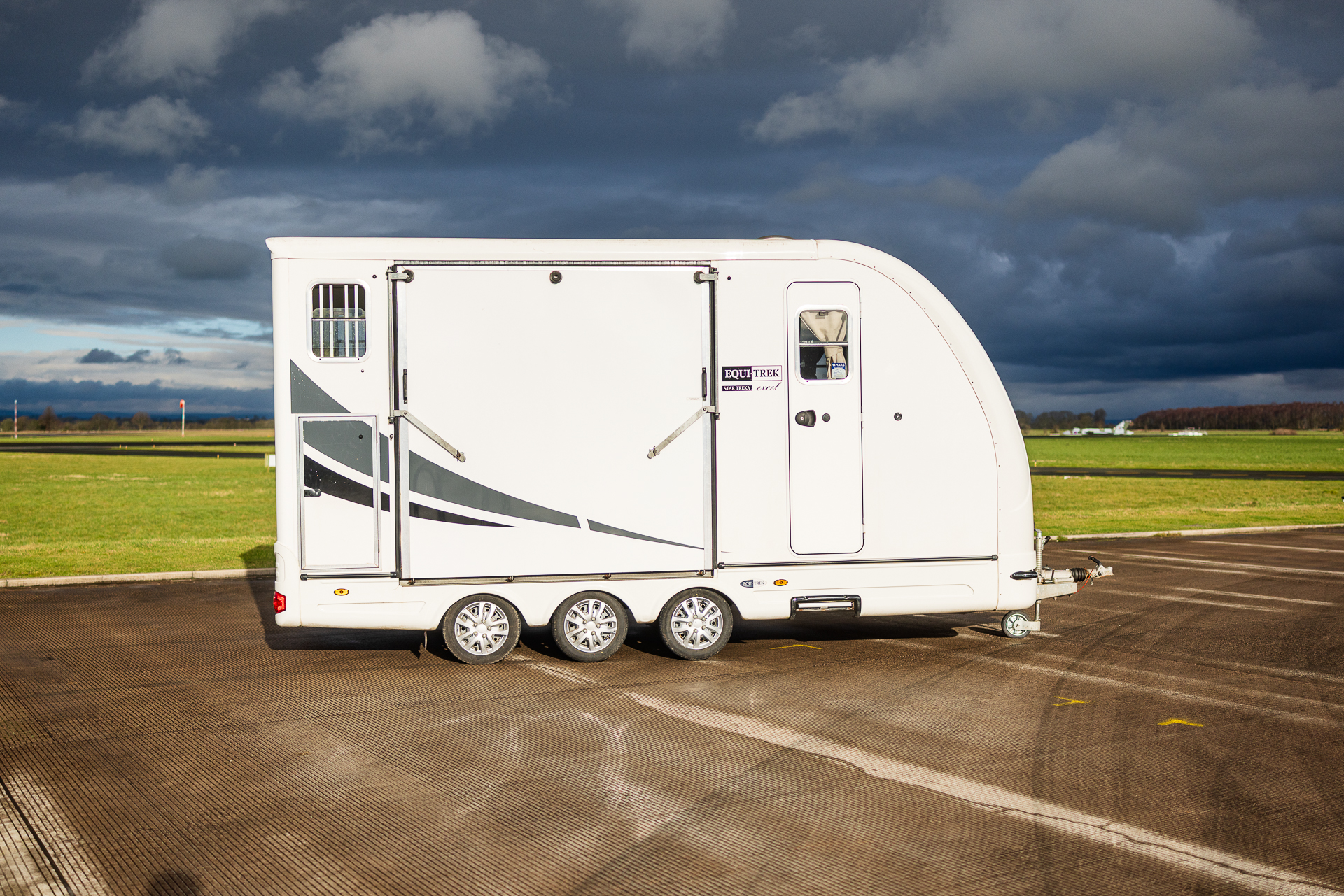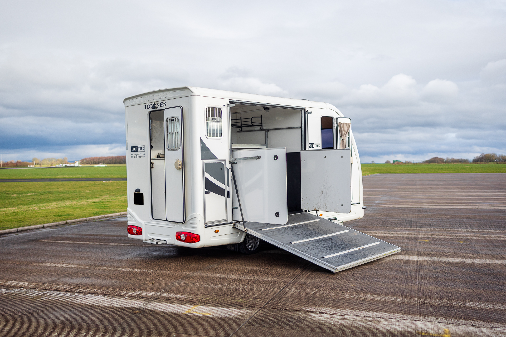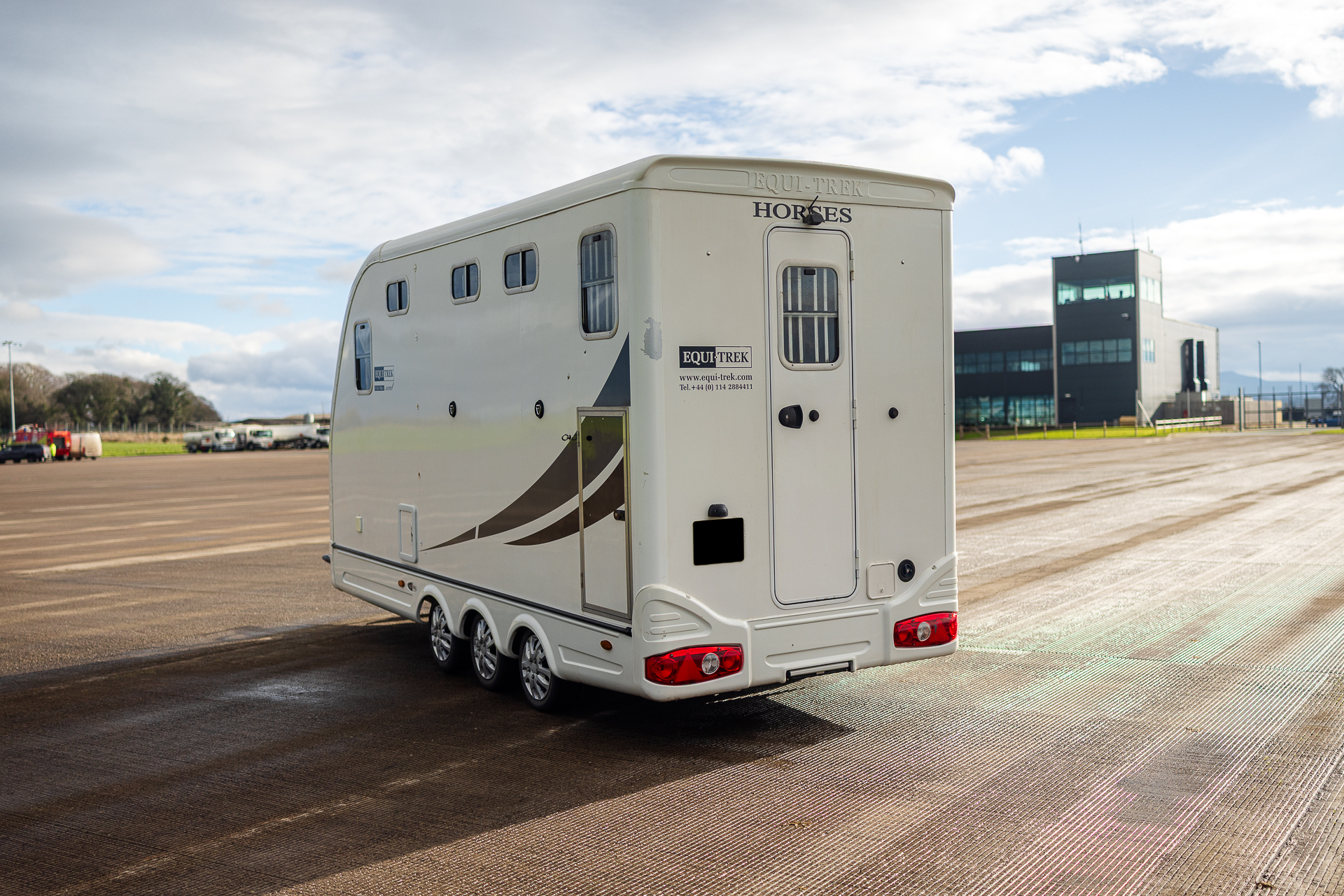 This superb 2022 Star-Treka is a rear-facing two-horse trailer with luxury overnight accommodation, finished in self-colour white with grey graphics. Built on a galvanised steel chassis with an aerodynamic fibreglass mould unique to the Equi-Trek range, it benefits from independent suspension, six fully braked wheels and a lockable coupling, delivering excellent towing stability and safety.