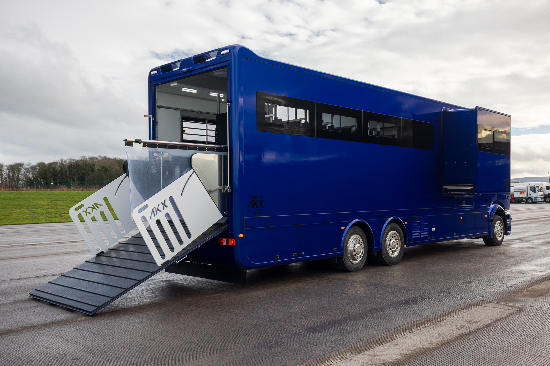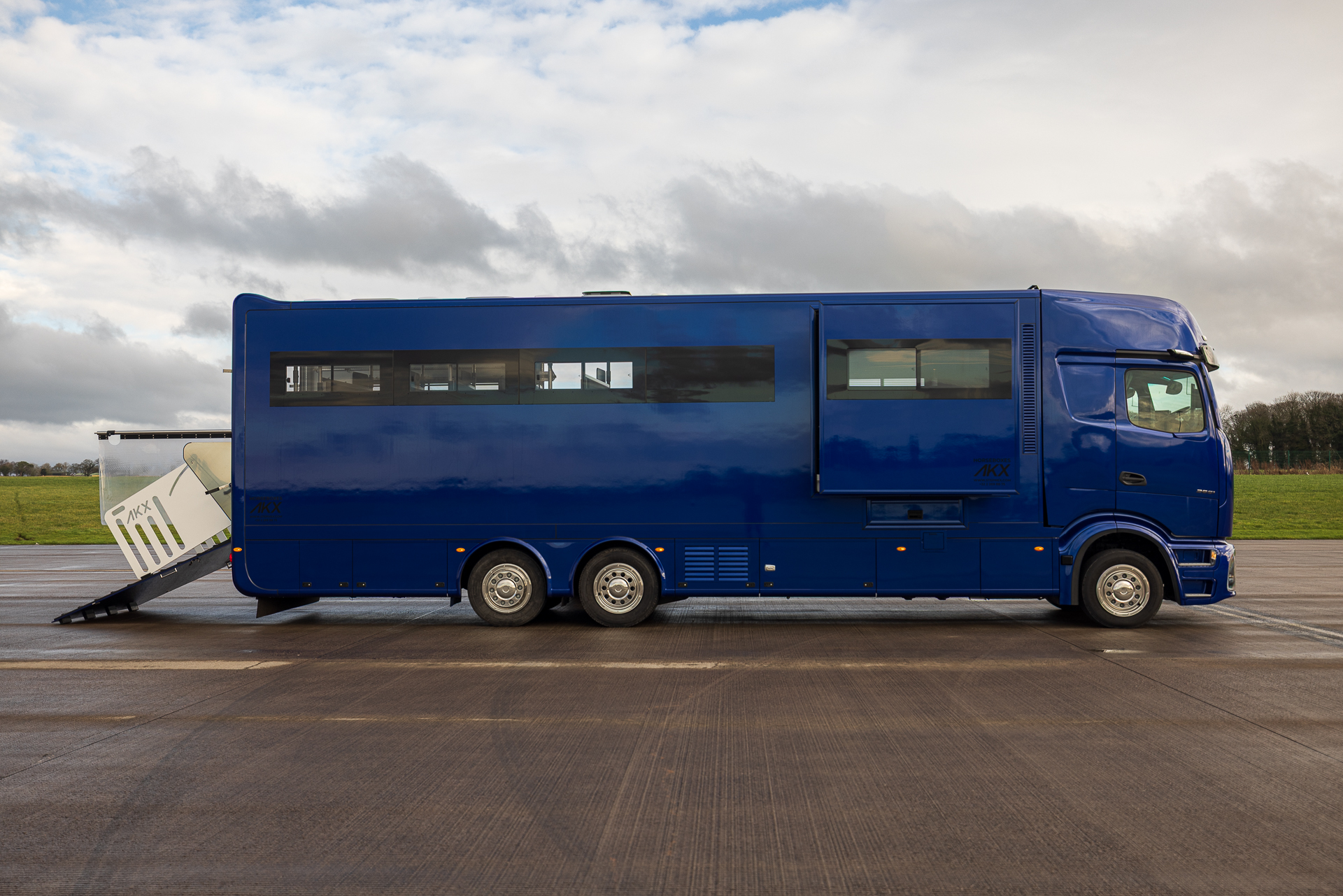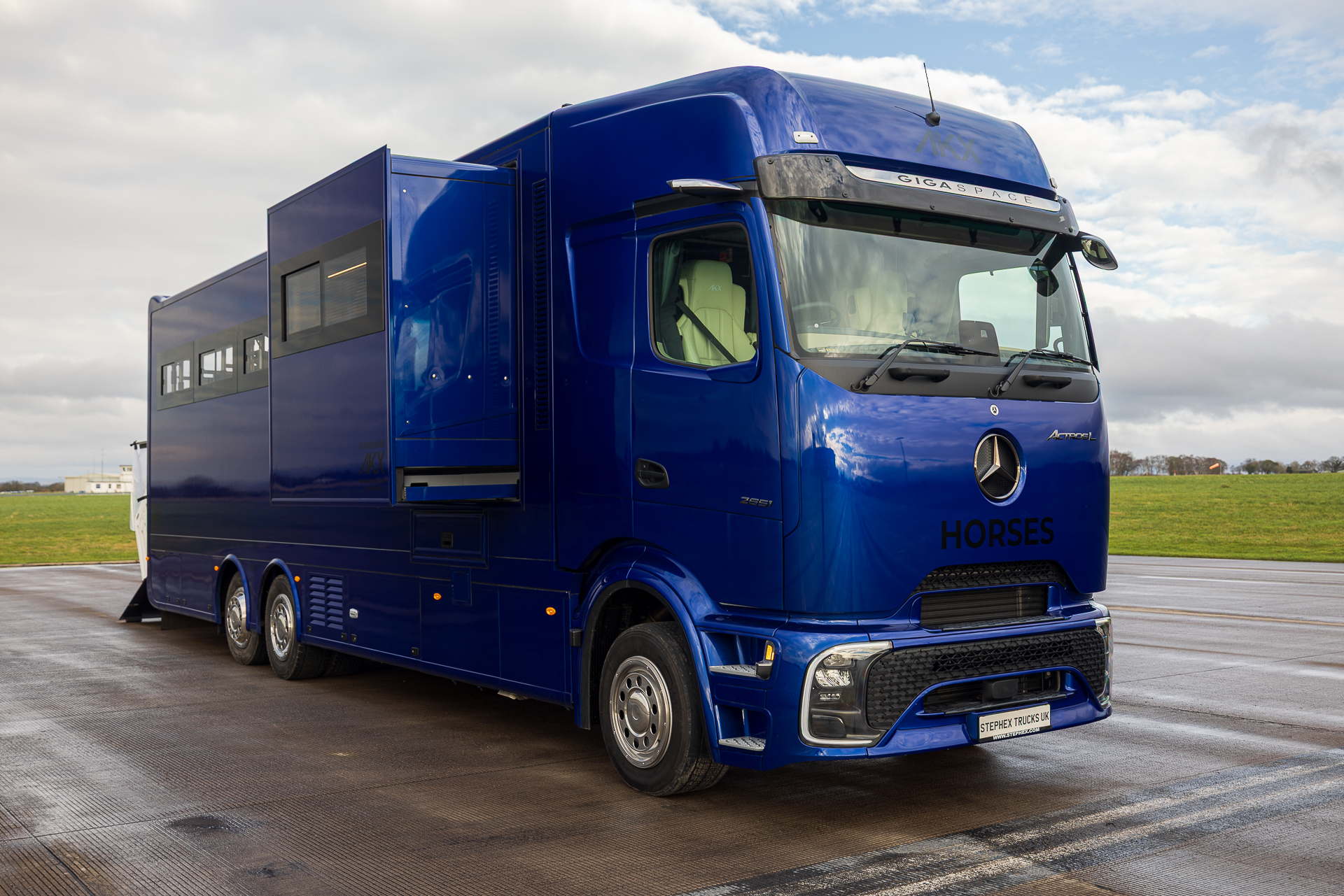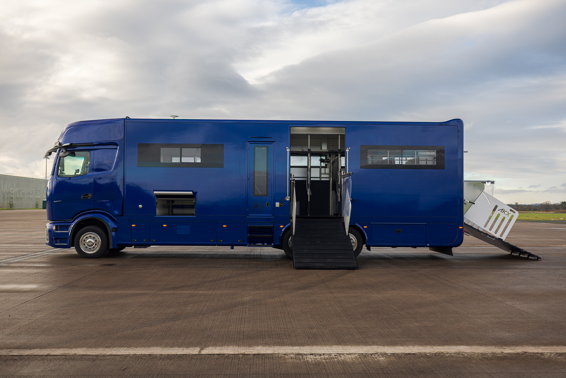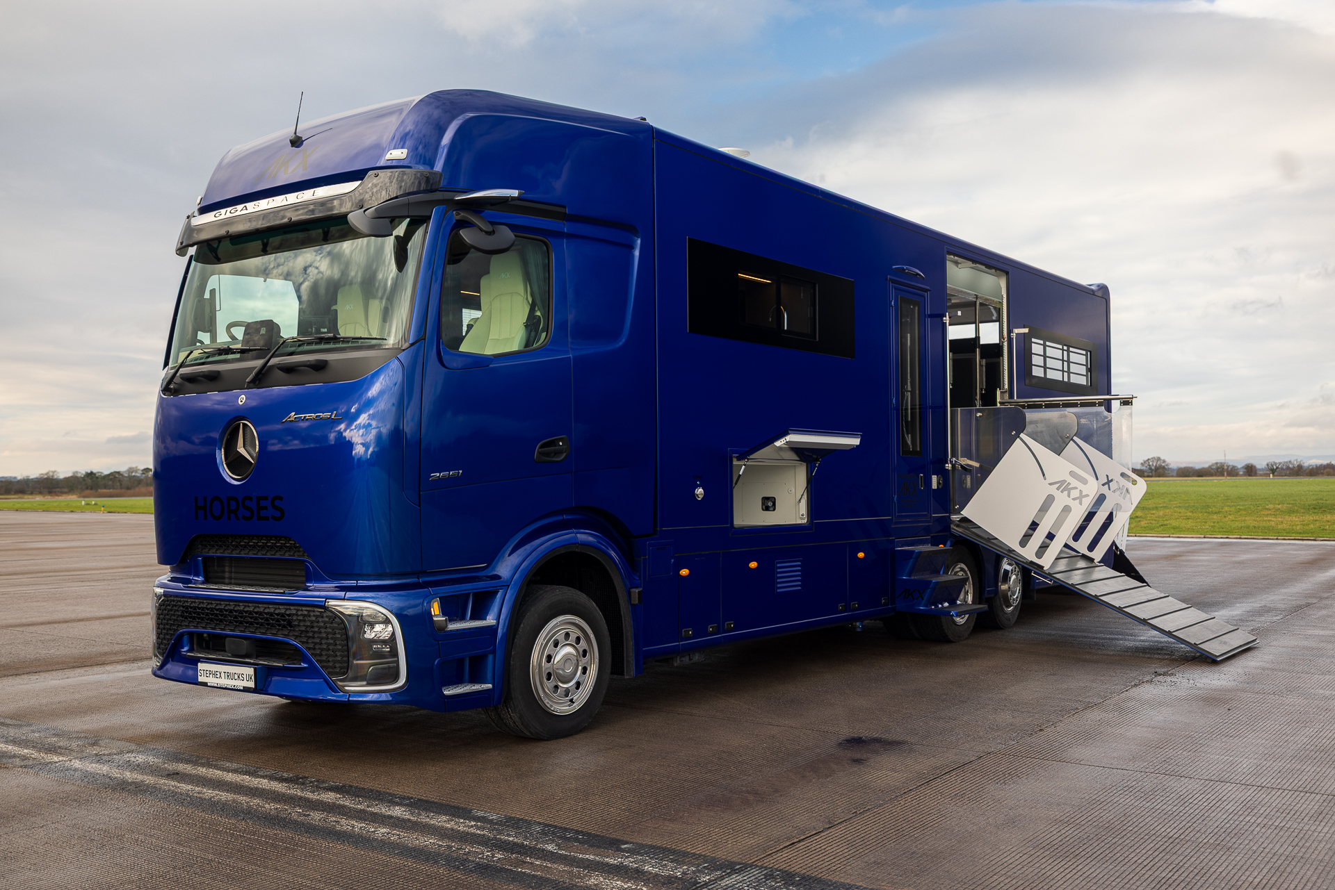 This 2026 Stephex AKX 510L 26-tonne horsebox is built on the highly specified Mercedes-Benz Actros L GigaSpace Pro Cab, delivering an impressive 510 bhp for effortless performance and outstanding long-distance comfort. Finished in the striking BMW San Marino Blue, it offers a premium yet cost-effective alternative to the STX range. The spacious layout provides sleeping accommodation for six people alongside safe, practical stabling for six large horses, making it ideal for professional and competitive use.