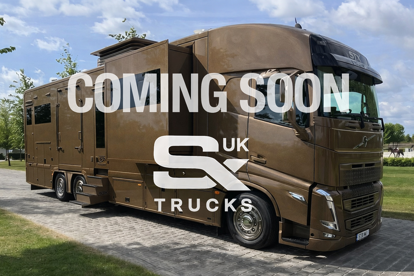 This Volvo F540 STX luxury horsebox represents the highest level of bespoke design and engineering, offering exceptional capacity, comfort, and technical sophistication for professional equestrian use. Configured as a six-berth vehicle with five horse stalls, it is ideally suited for competition teams and riders requiring generous living accommodation alongside advanced horse transport facilities. Two large pop-outs and a push-up mega roof dramatically enhance interior space and natural light, while premium finishing throughout reflects a carefully curated, high-end mood board.