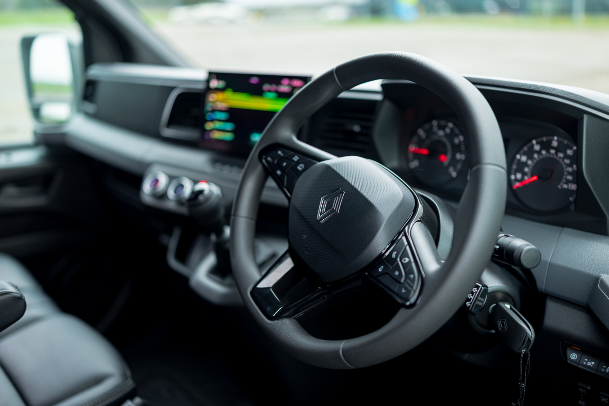 The cab is a 3-seat single cabin finished in the stylish and modern Porsche Crayon Grey, paired with three black leather seats for a sleek, contemporary interior. Driver comfort is enhanced with cruise control, air-conditioning, satellite navigation, and a touchscreen multimedia system, making long journeys comfortable and stress-free. Practical additions include a tow bar and step and a full camera system for increased visibility and safety.